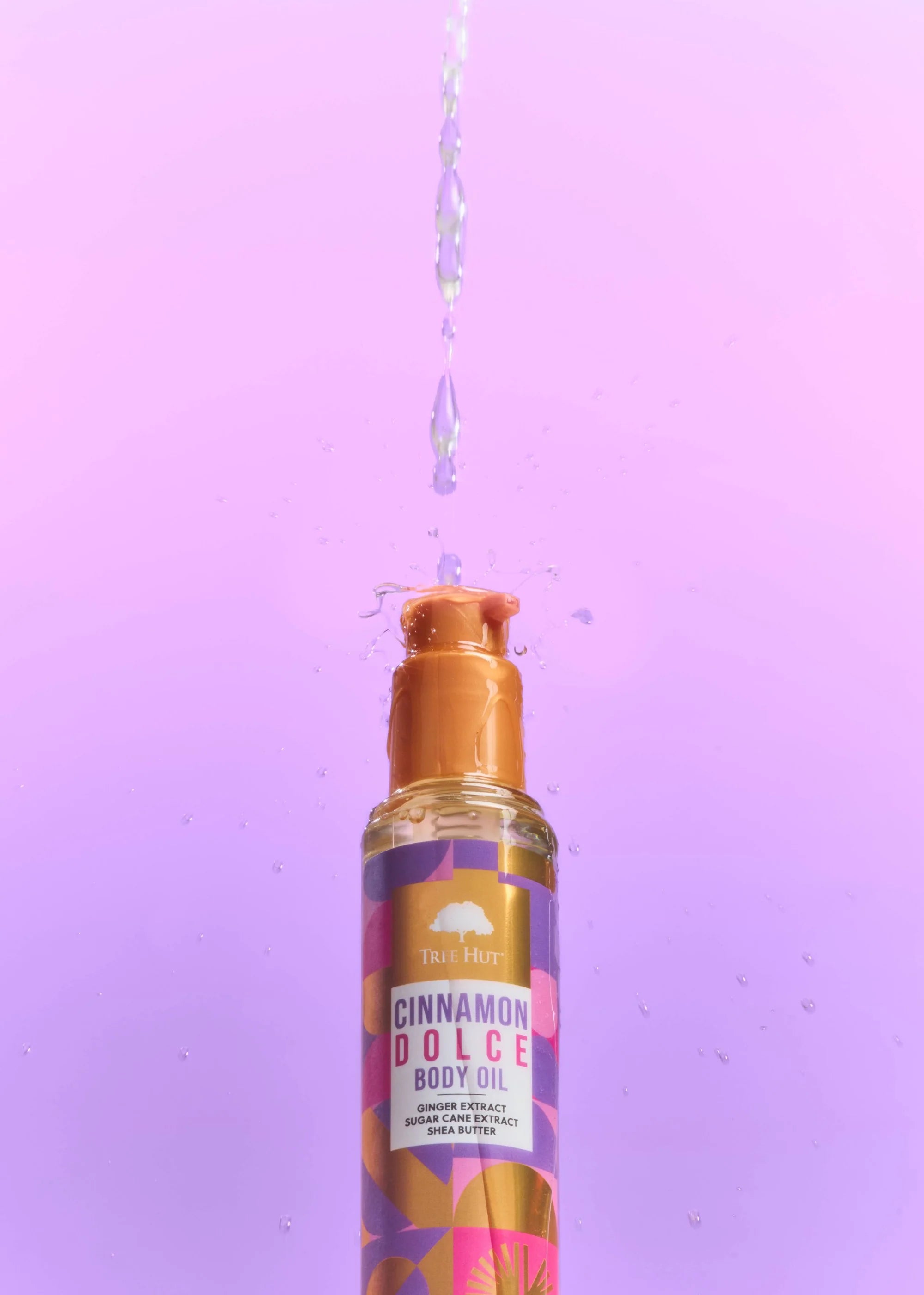 Tree Hut's Cinnamon Dolce Body Oil is the perfect way to hydrate your skin while indulging in a café treat–inspired scent, featuring delicious notes of caramelized sugar, graham cracker and a warm hint of cinnamon. Our lightweight, non-greasy formula is infused with Apricot, Açaí, and Geranium Oils, along with Ginger and Sugar Cane Extracts, to leave your skin soft, supple, and glowing.